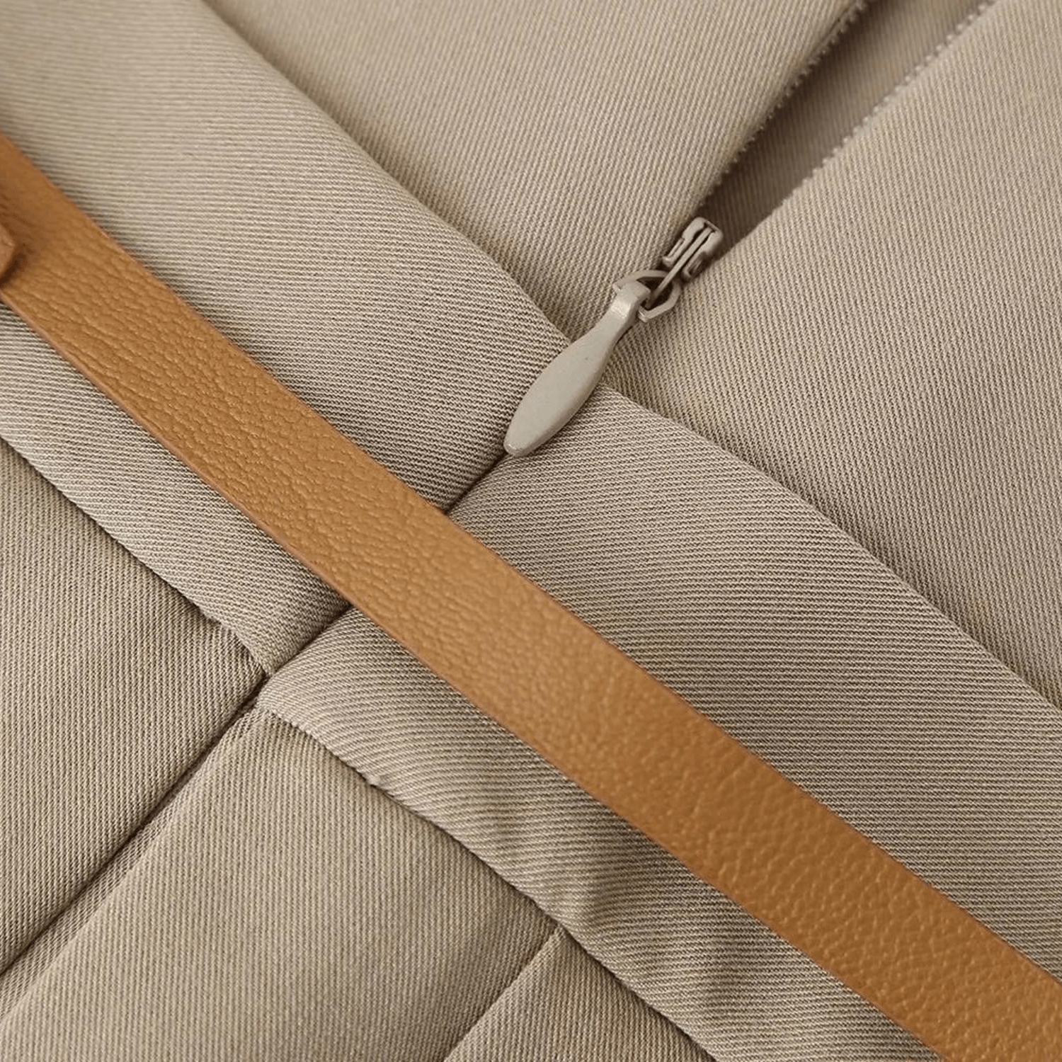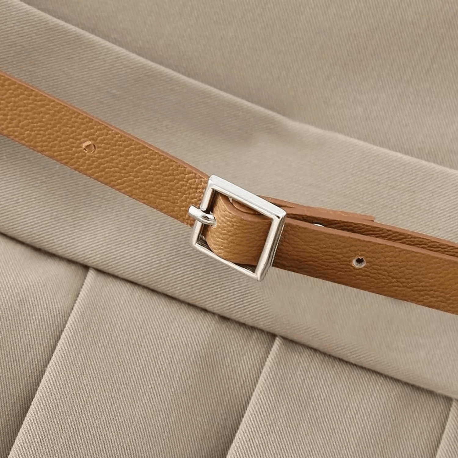 Saia plissada de cintura alta com cinto decorativo. Fechamento em zíper lateral. Estilo esportivo.