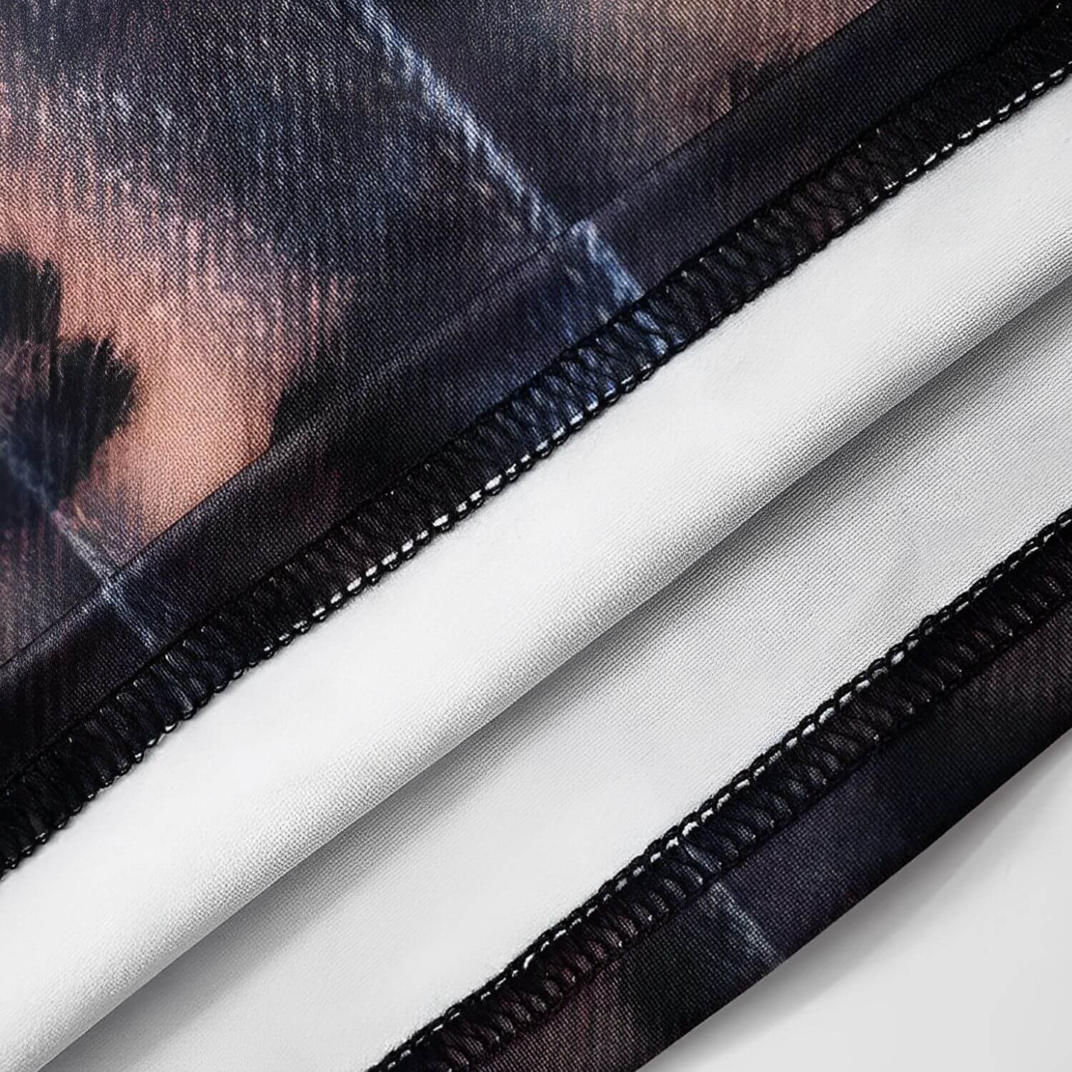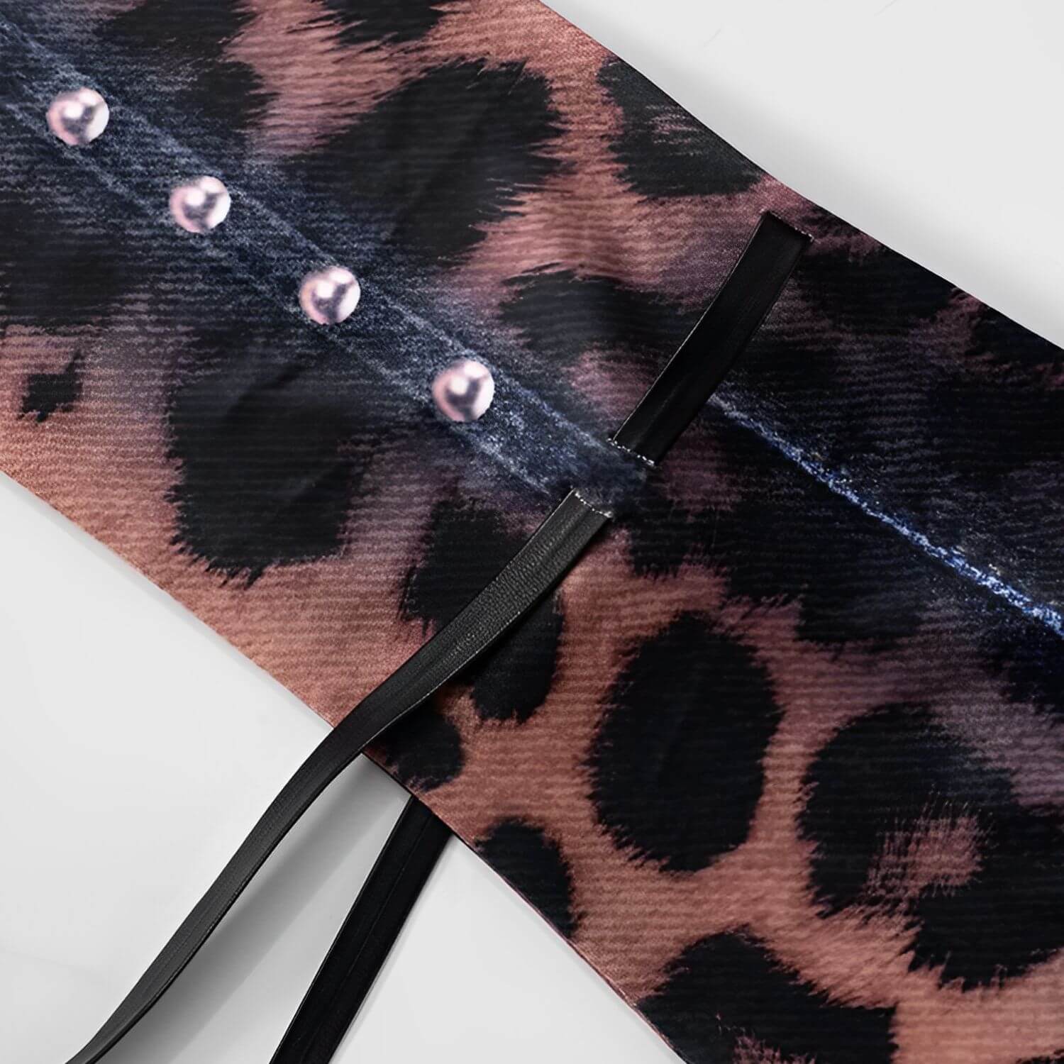 Long-sleeve bodycon dress with darkened animal print. Seamed panels with marked stitching and metallic eyelet details. Cuffs with tie accents and slightly sheer fabric. Topstitch finish with a shaping structure.