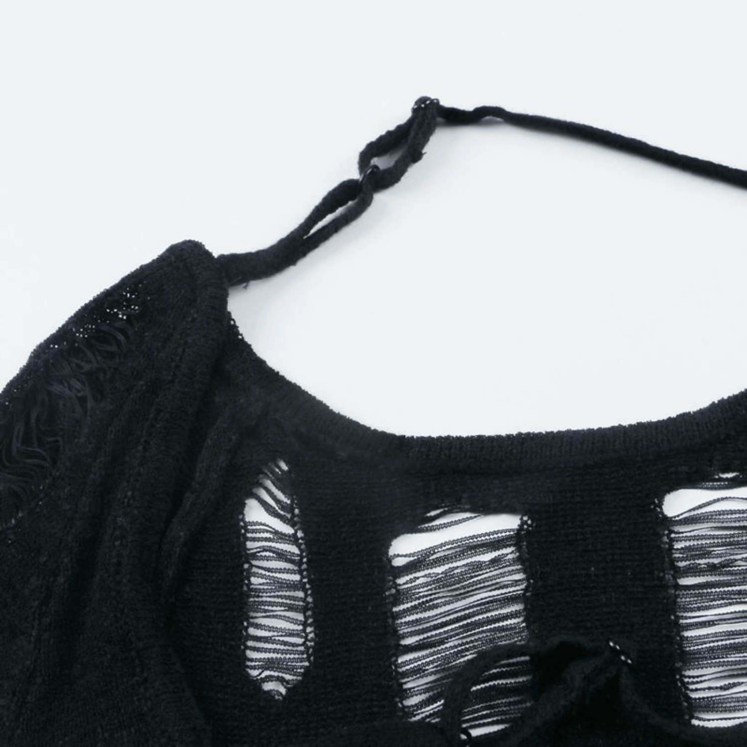 Long-sleeve short dress with transparent cutouts. Back neckline with tie detail. Body-adjustable fabric.